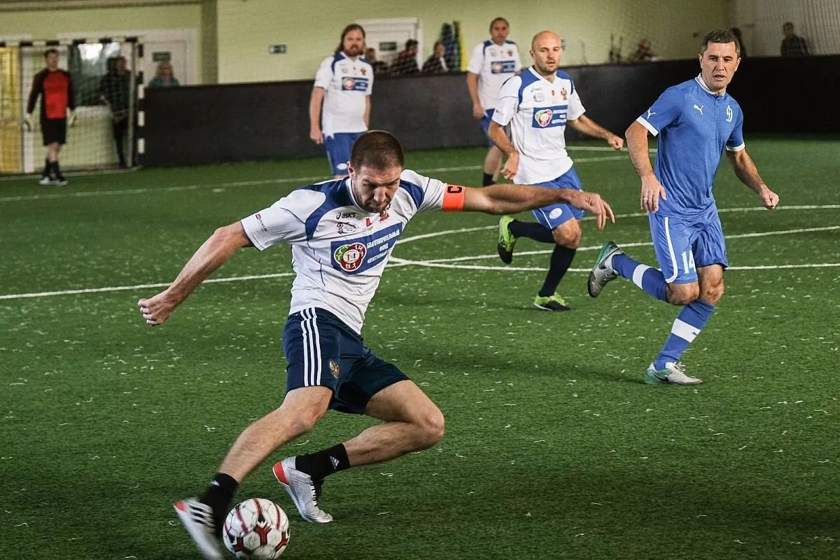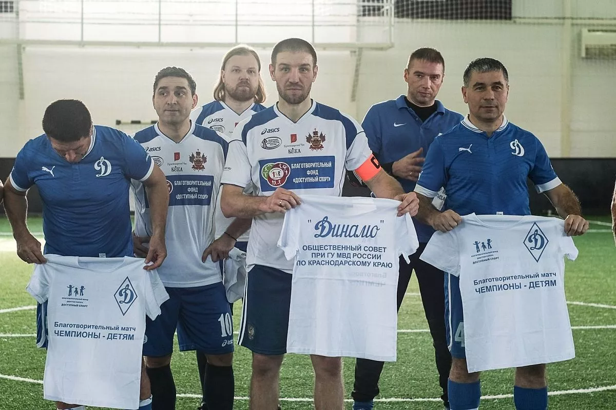 В товарищеской игре приняли участие сотрудники полиции и знаменитые российские спортсмены. В состав команды звезд спорта вошли чемпион мира по боксу по версии WBO, депутат Госдумы Дмитрий Пирог, олимпийский чемпион по греко-римской борьбе, двукратный чемпион мира и Европы, Вартерес Самургашев, серебряный призер Олимпийских игр по волейболу, победитель Мировой лиги Руслан Олихвер, четырехкратный чемпион России по футболу, экс-игрок сборной России Максим Бузникин, обладатель Кубка России по футболу, экс-игрок сборной России Максим Деменко, трехкратный обладатель Кубка России по футболу Олег Терёхин, обладатель Кубка СССР по футболу, серебряный призер чемпионата СССР Андрей Юдин.