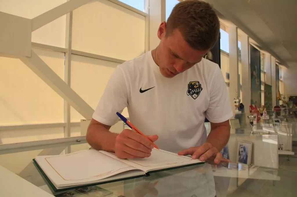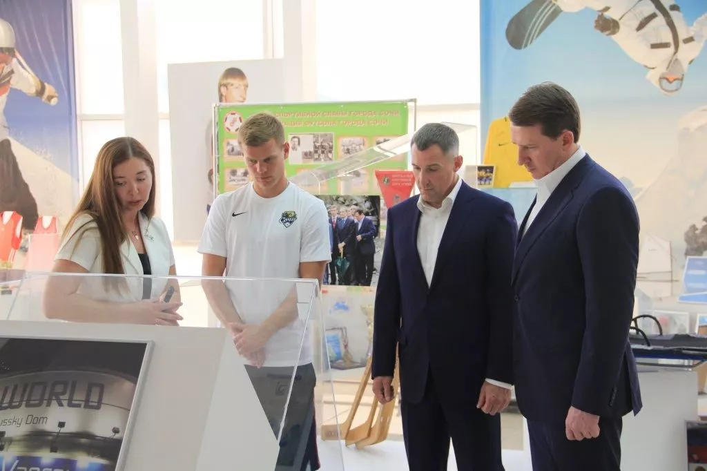 Мэр курорта Алексей Копайгородский и гендиректор ФК «Сочи» Дмитрий Рубашко вместе с форвардом Александром Кокориным посетили музей спортивной славы Сочи.