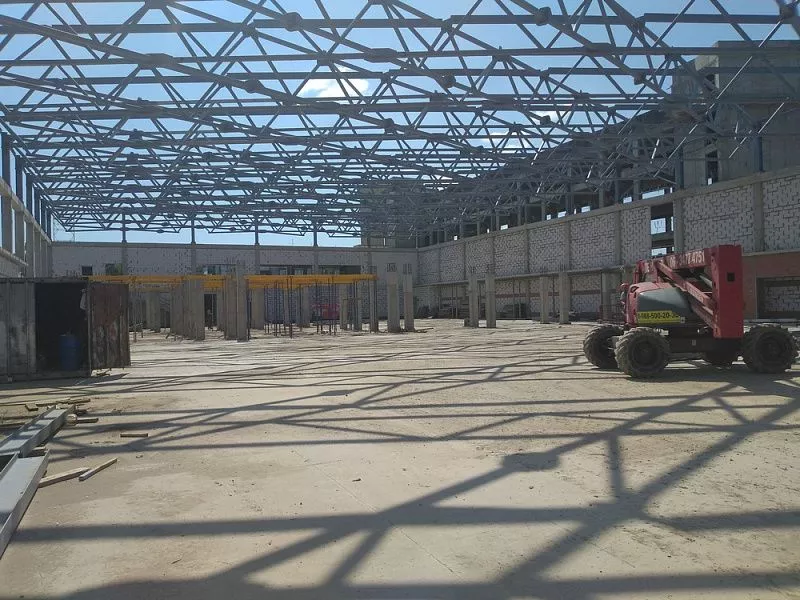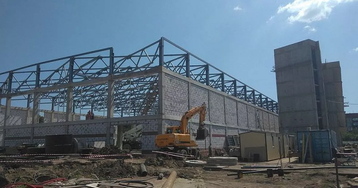 В двухэтажном здании будет сразу три спортзала: для игровых видов спорта, единоборств и тренажерный. Спорткомплекс планируют достроить до конца этого года.