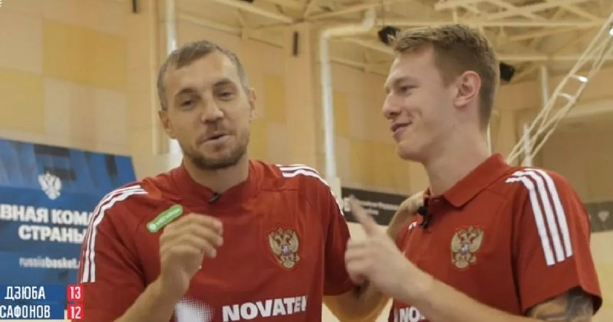 Футболисты сборной России соревновались в точности бросков в баскетбольное кольцо. Они провели по три броска с разных точек. С преимуществом в одно очко победу одержал капитан национальной сборной Артем Дзюба (12:13).