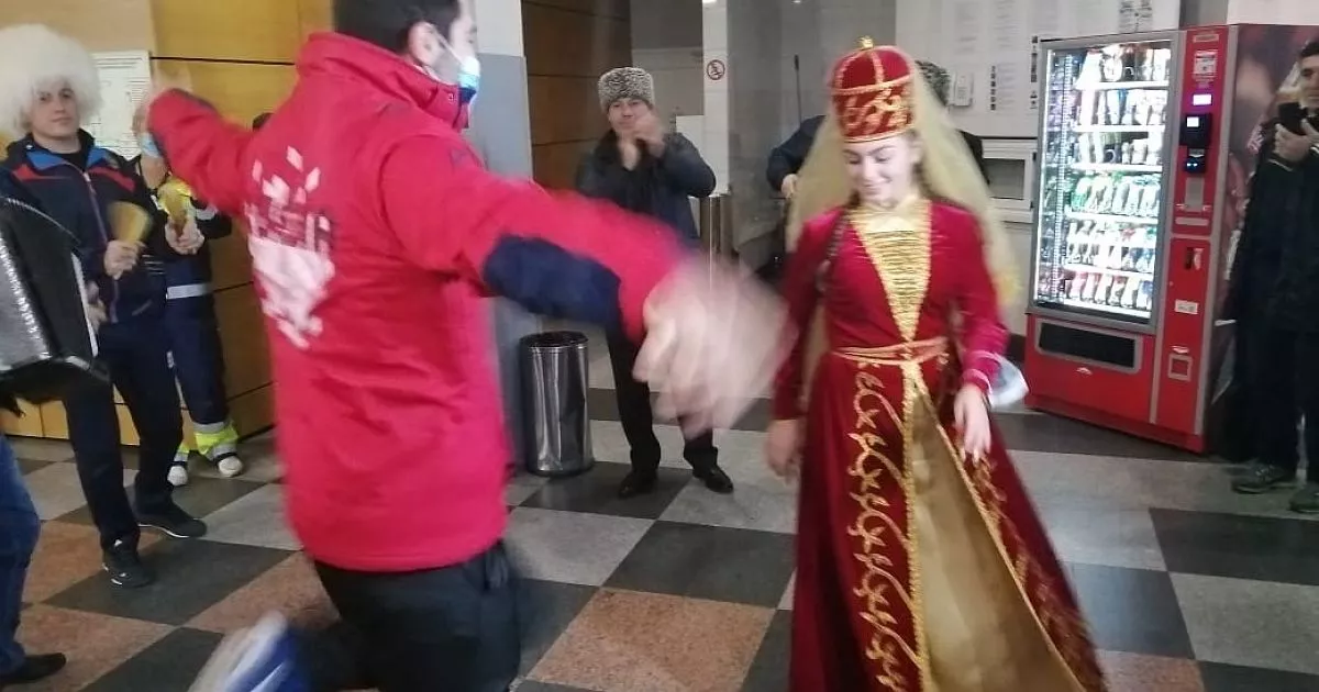 Михаила Игольникова, завоевавшего титул чемпиона Европы по дзюдо, встретили друзья и родственники. Они исполнили для спортсмена песни и танцы шапсугов.