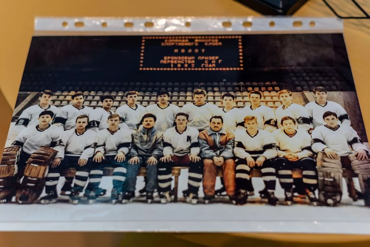 На интервью Сергей Аркадьевич пришел со стопкой архивных фотографий. На снимках еще молодые пацанята в хоккейной форме.