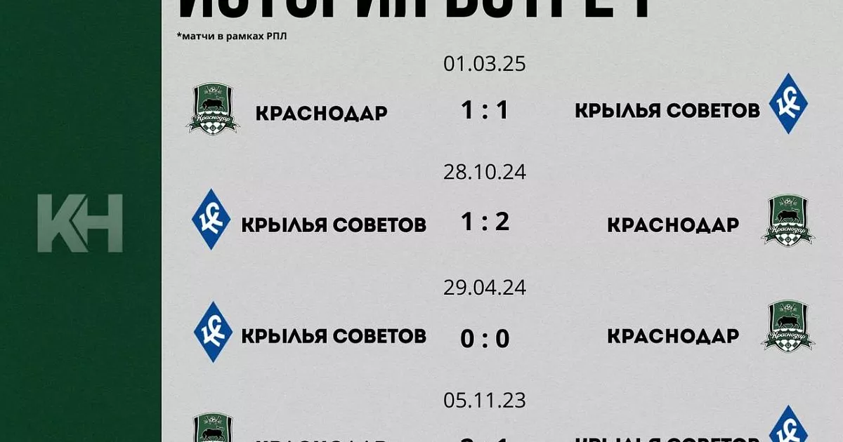 Последние очные встречи показывают, что «Крылья» умеют отбирать очки у краснодарцев, но чаще именно южане выходят победителями. Поэтому расклад простой: хозяевам придётся сыграть почти идеально, чтобы удержать хотя бы ничью. «Крылья» дома опасны и любят играть от обороны. Но если «Краснодар» выдержит свой темп, матч может закончиться минимальной, но уверенной победой гостей. Самарцы будут делать ставку на быстрые контратаки. Вероятность результативного матча не так велика — обе команды умеют сушить игру, если того требует ситуация.