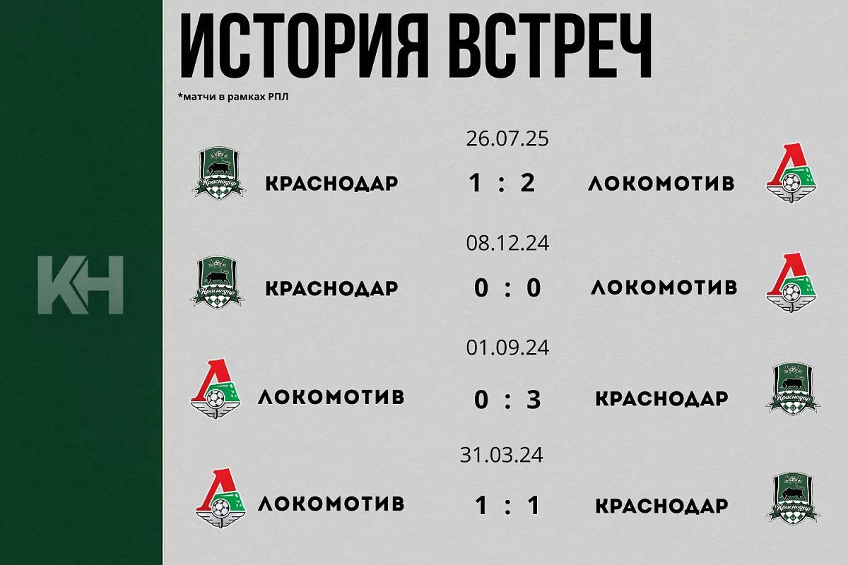 В очных встречах небольшое преимущество у москвичей: в 31 официальном матче они выигрывали 14 раз, «Краснодар» — 10, ещё 6 игр завершались вничью. Обычно команды играют результативно — голы в этой паре случаются почти всегда.