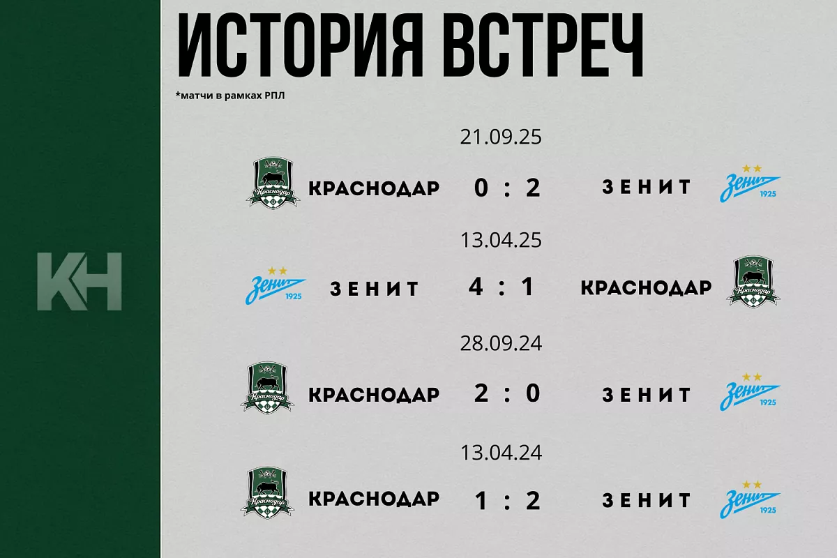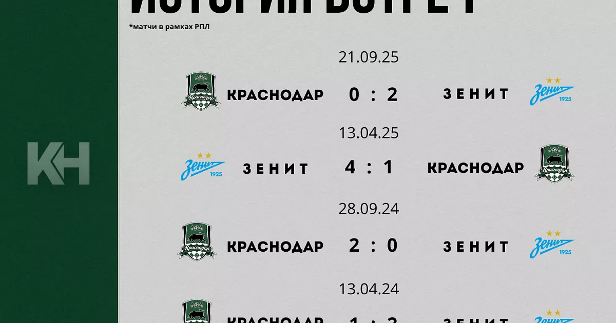 Дополнительный нерв — в истории их противостояния по ходу сезона. В первом круге «Зенит» уверенно забрал три очка в Краснодаре, оформив сухую победу 2:0 — тогда отличились Максим Глушенков и Луис Энрике. Это дает команде Сергея Семака важное преимущество в очных встречах, которое может всплыть в самый критический момент. Но зимой «Краснодар» ответил громко: 3:0 в Зимнем кубке РПЛ — сигнал о том, что лидер чемпионата умеет находить уязвимости даже у действующего чемпиона.