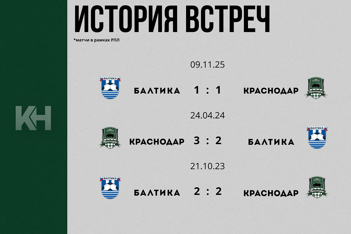 При этом «Балтика» — соперник далеко не простой. Калининградцы закрепились в верхней части таблицы, держатся вблизи еврокубковой зоны и берут свое за счет дисциплины и четкой игры в обороне. В последних турах команда регулярно цепляется за очки, играя прагматично и на характере.
