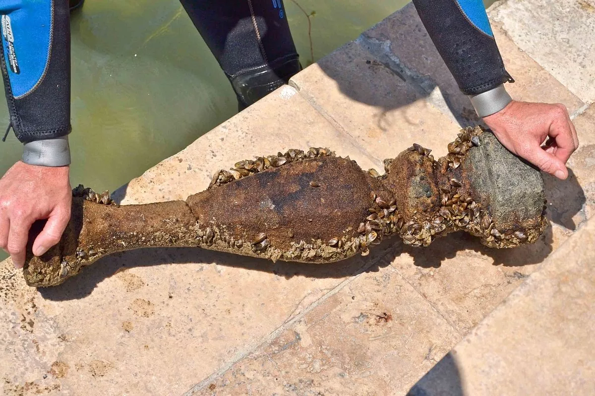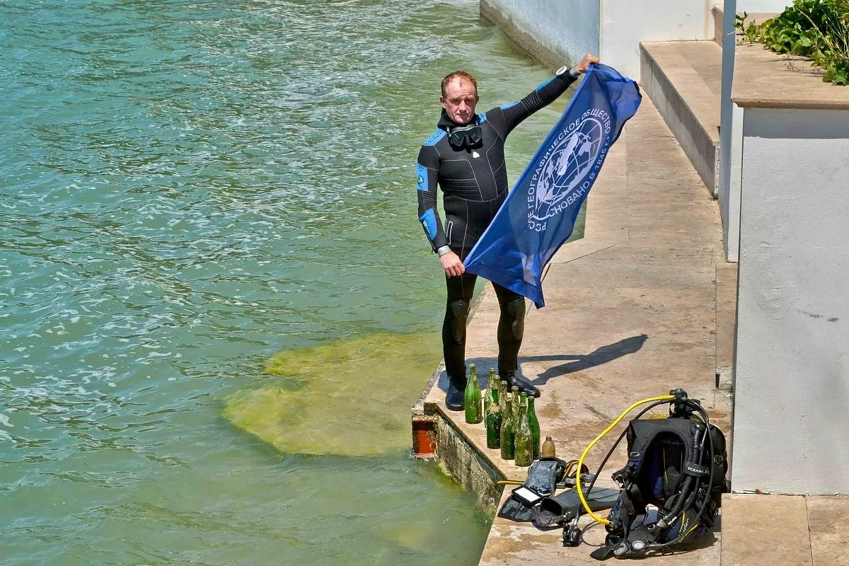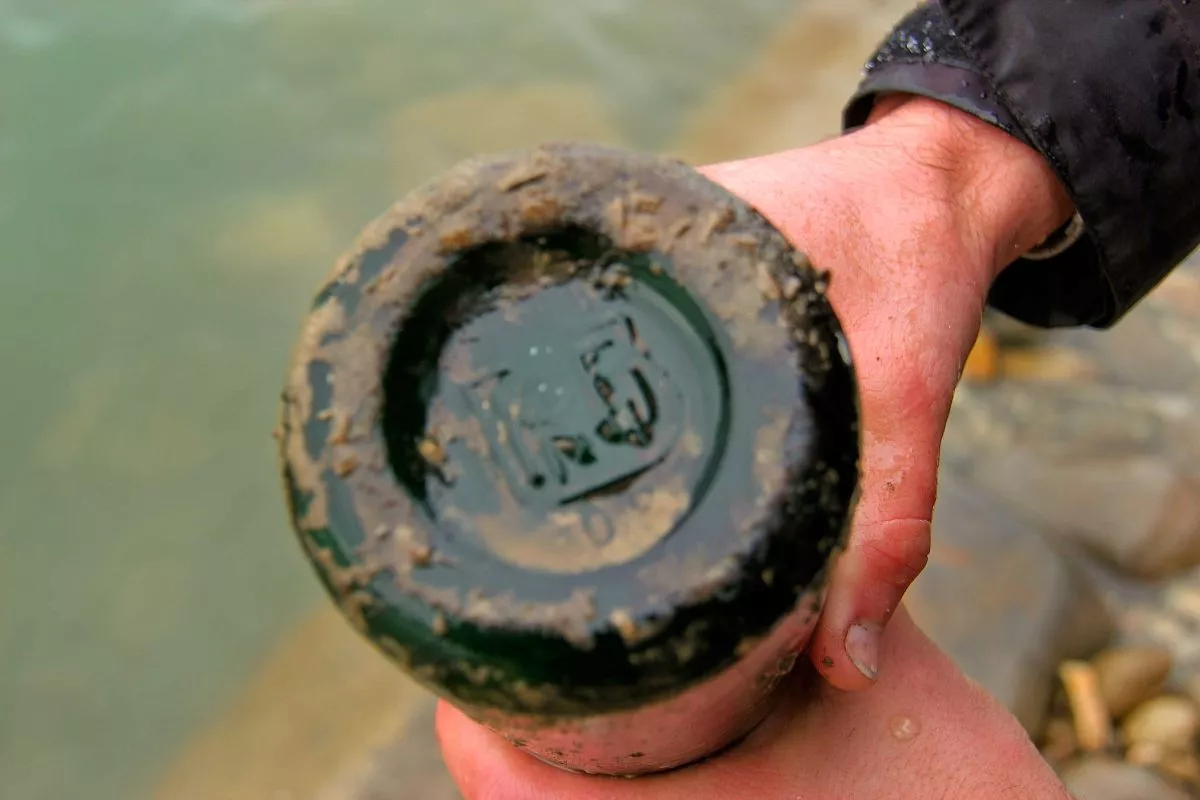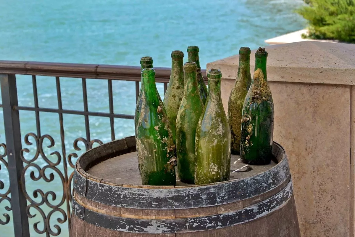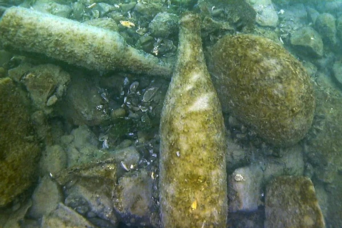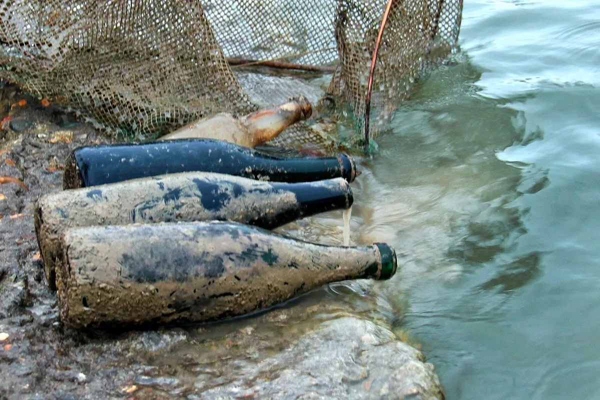 Во время экспедиции ныряльщики обнаружили бутылки из-под шампанского почти столетней давности.