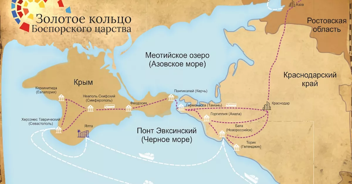 Напомним, проект «Золотое кольцо Боспорского царства» был создан по инициативе Краснодарского регионального отделения Русского географического общества и министерства курортов, туризма и олимпийского наследия Краснодарского края. Он включает более 35 объектов культурно-исторического наследия, музейных комплексов, археологических площадок и современных объектов туристского показа античной тематики на территории 12 городов юга России.