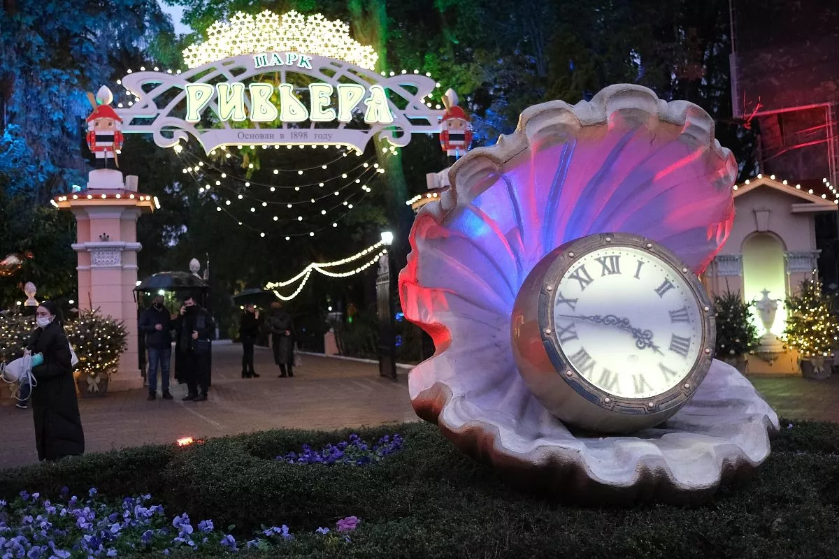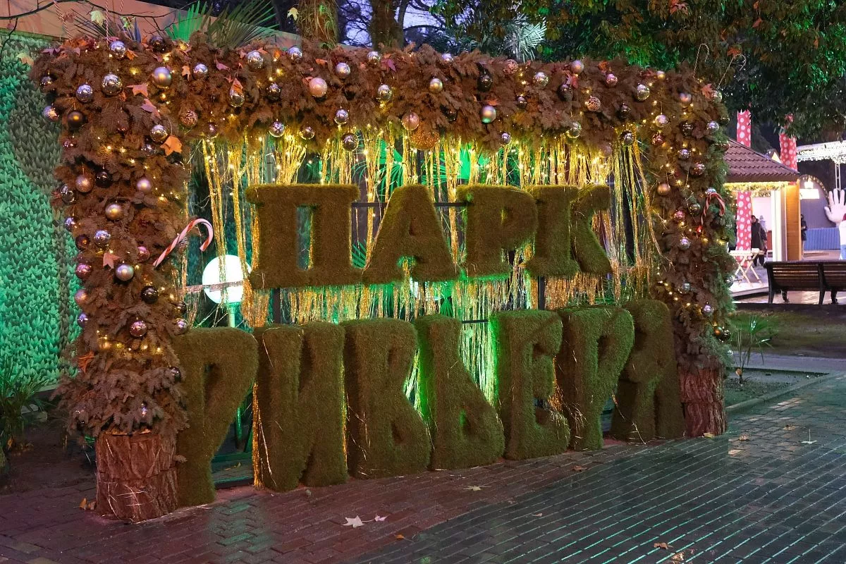 В золотом теплом цвете оформили и другие элементы праздничного декора курорта. По всему городу можно увидеть мерцающие арки, консоли, гирлянды и фотозоны. Даже стволы пальм обвивают сотни маленьких золотых огоньков. Особое внимание в этом году уделили украшению сочинских парков и скверов. Золотом перед Новым годом засияла одна из главных исторических достопримечательностей курорта – парк «Ривьера».