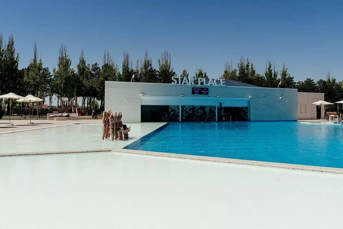 пять бассейнов площадью 3200 квадратных метров с баром и шезлонгами;