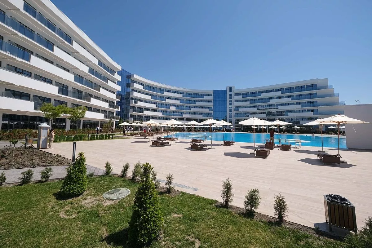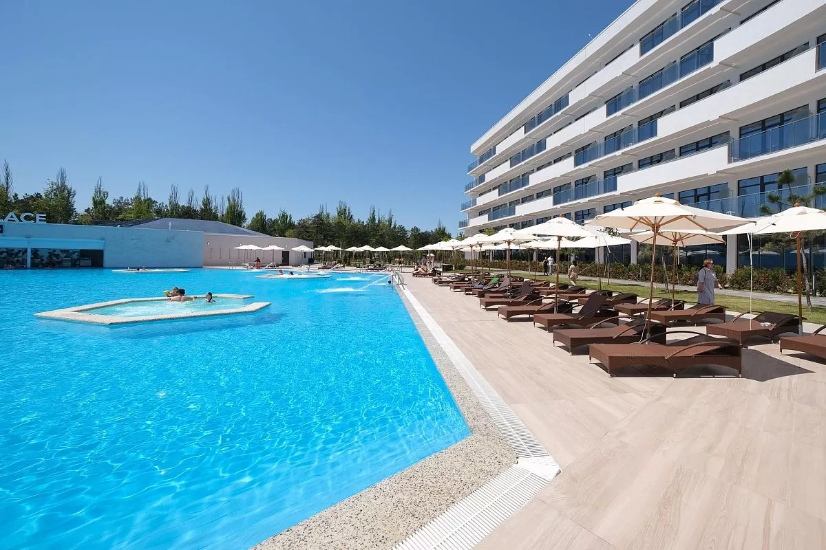 Еще один плюс для семей с детьми – огромный собственный пляж курорта Miracleon. Это белоснежные теневые паруса и зонтики, десятки шезлонгов, спортивная площадка, бары и фуд-траки, а главное – целебные анапские дюны и море. Пляж отеля уже получил первую российскую категорию – «синий флаг» – и претендует на присвоение высшего международного знака экологии и качества – «голубого флага».