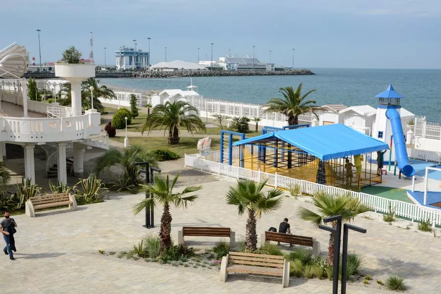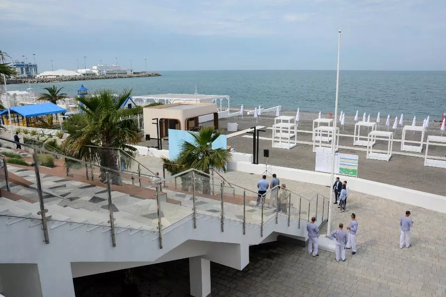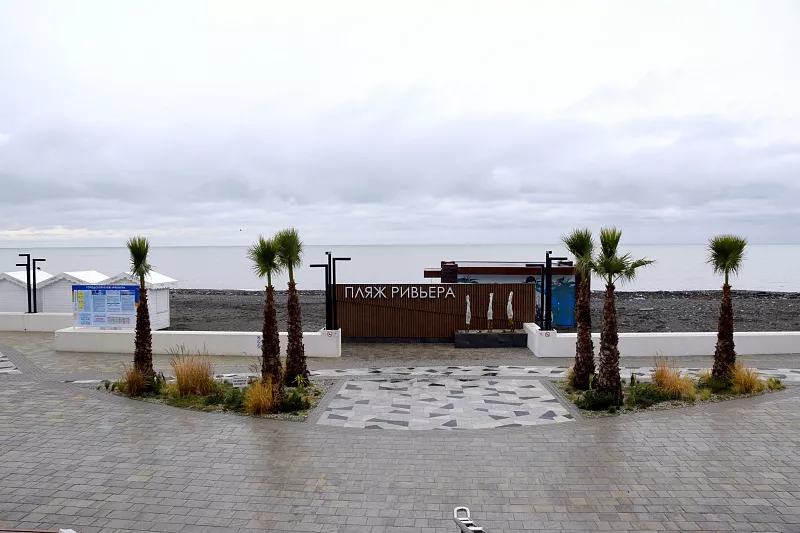 К началу высокого летнего сезона в Сочи завершено и благоустройство Приморской набережной пляжа «Маяк». Здесь создано принципиально новое общественное пространство с современными прогулочными зонами и местами отдыха. С белоснежного променада открывается красивый вид на Черное море.