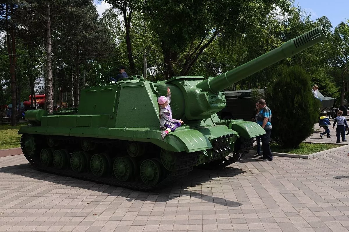 Здесь любят проводить свободное время краснодарцы и гости города. В парке можно не только прогуляться, но и прикоснуться к истории Великой Отечественной войны. В прямом смысле – все экспонаты можно трогать руками, а также влезать на них, чтобы сфотографироваться. Здесь представлено около 40 единиц военной техники – танки, пушки, зенитные установки, «катюши». На территории есть памятник героям Советского Союза, освобождавшим Кубань.