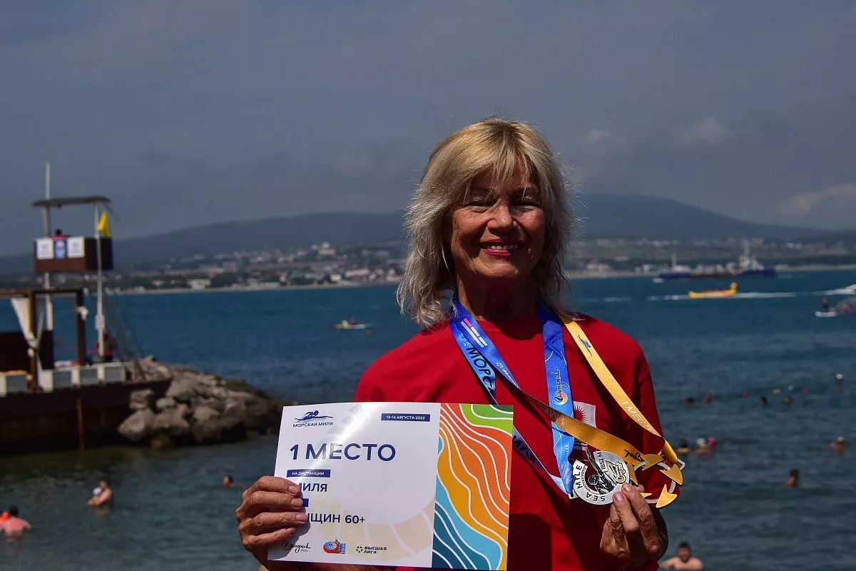 Татьяна Штефан из Геленджика первой проплыла милю и получила золотую медаль среди женщин группы «60 плюс».