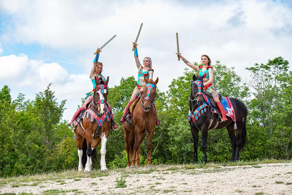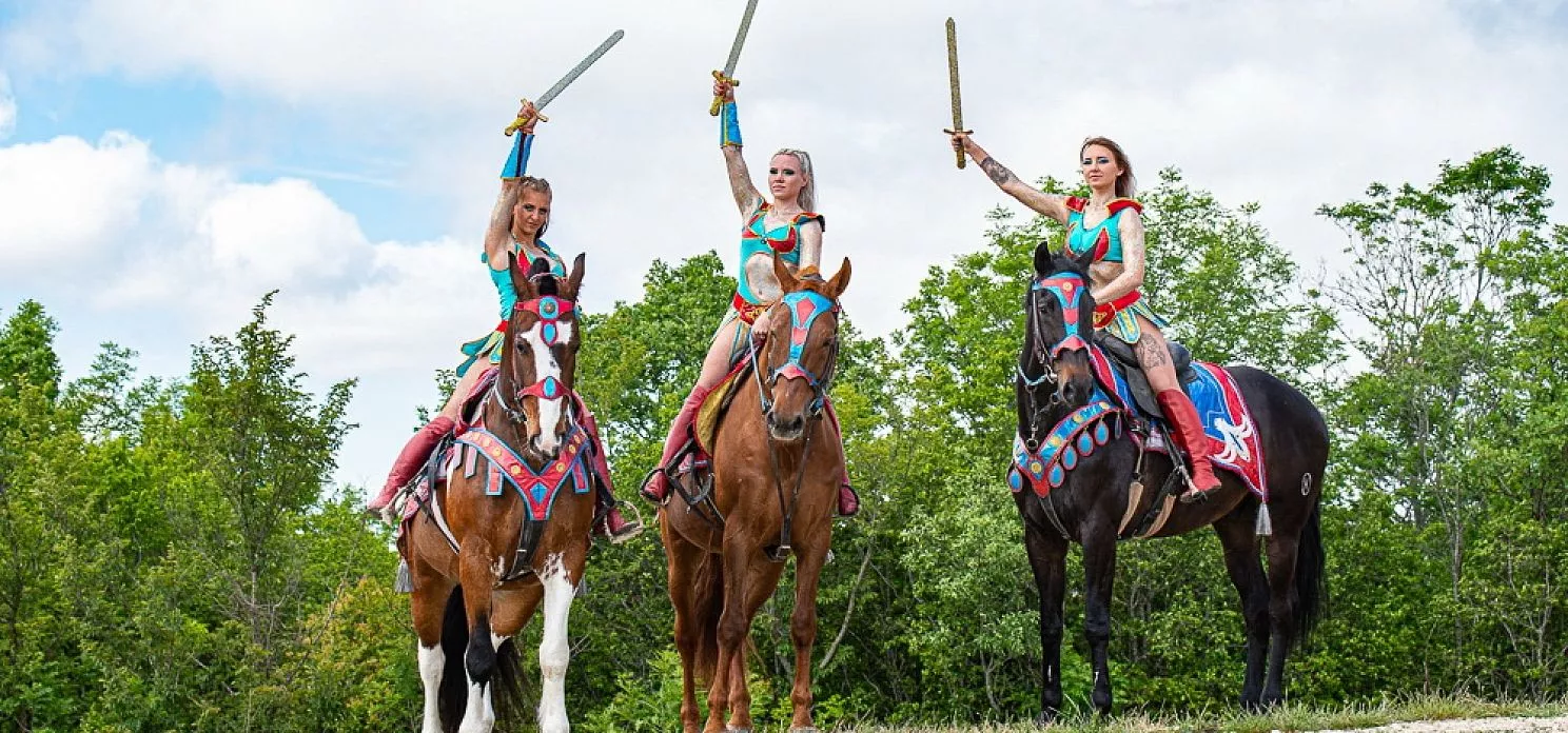 – Отмечу, что шоу – это не собрание отдельных номеров, а полноценные театрализованные постановки, где кроме наездников участвуют воздушные акробаты, артисты балета, музыканты. Одно из таких представлений включено в масштабный проект «Золотое кольцо Боспорского царства». Мы его разработали по просьбе министерства курортов, туризма и олимпийского наследия Краснодарского края, опираясь на легенды и исторические источники. Представление рассказывает об амазонках, которые жили пять тысяч лет назад на Кубани. Считается, что отважные женщины-воительницы потерпели поражение от греков и были захвачены в плен. Их посадили на корабль, однако в открытом море они напали на эллинов и перебили всех мужчин. Но амазонки не были знакомы с навигацией и не умели ходить под парусами. Гонимые ветрами и волнами корабли причалили в окрестности современного Абрау-Дюрсо. Так на побережье Черного моря появились племена амазонок, которым и посвящено шоу. Также у нас есть постановка, связанная с историей и культурой кубанского казачества, – поделилась Марина Гончарь.