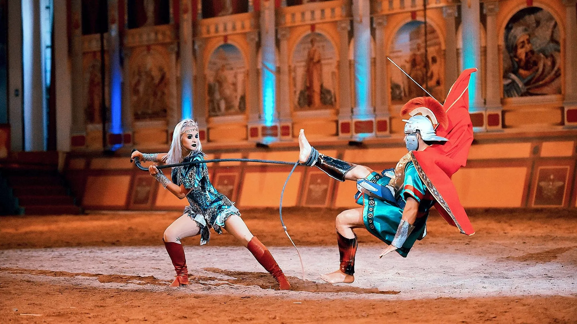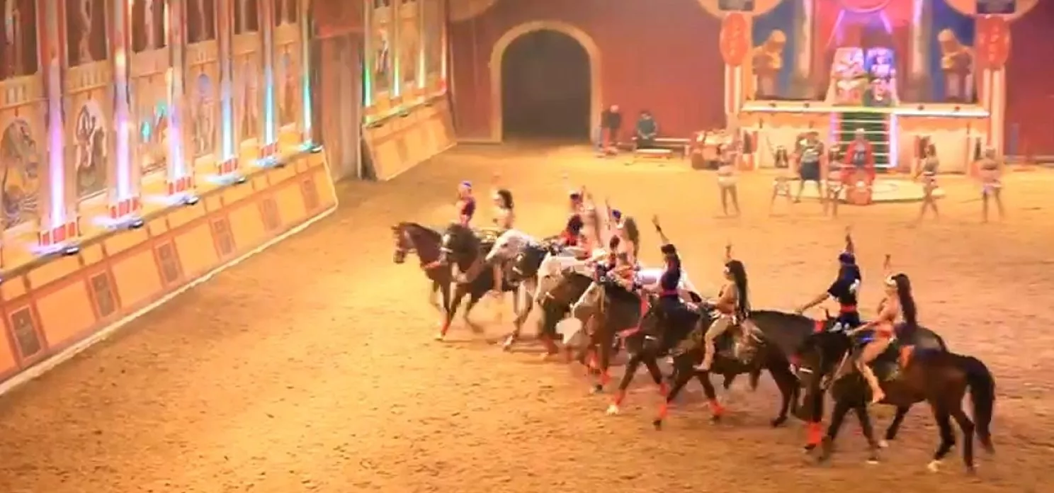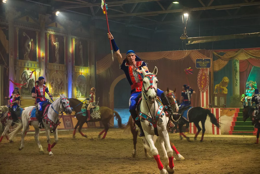– Конные шоу-программы – изюминка нашего комплекса. Они проходят на арене – «колизее», рассчитанной на 1,5 тысячи посадочных мест. Это уникальное для представлений место – единственный в России крытый амфитеатр для зрелищных постановок в формате конных шоу. Он оснащен современной светомузыкальной техникой, декорациями и конным полем со специальным покрытием из кварцевого песка, – рассказала заместитель директора культурно-туристического комплекса Марина Гончарь.