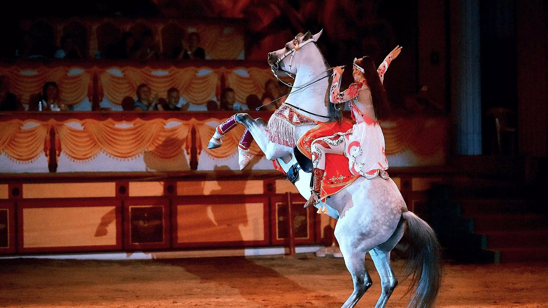 – Джигитовке и трюкам я учился как раз там. Когда пришел сюда, пришлось перестроиться. Так как арена, на которой проводятся шоу, отличается от круглого циркового манежа. Но адаптация прошла быстро и успешно. Сегодня выступаю в разных шоу. Очень люблю элементы, когда на скорости надо стоять на спине лошади. А зрителям больше всего нравится трюк, где лошадь в галопе, я с прыжка ложусь в седло, затем перебираюсь на шею животного и оттуда опять запрыгиваю в седло. Очень эффектно смотрится, – поделился артист-наездник.