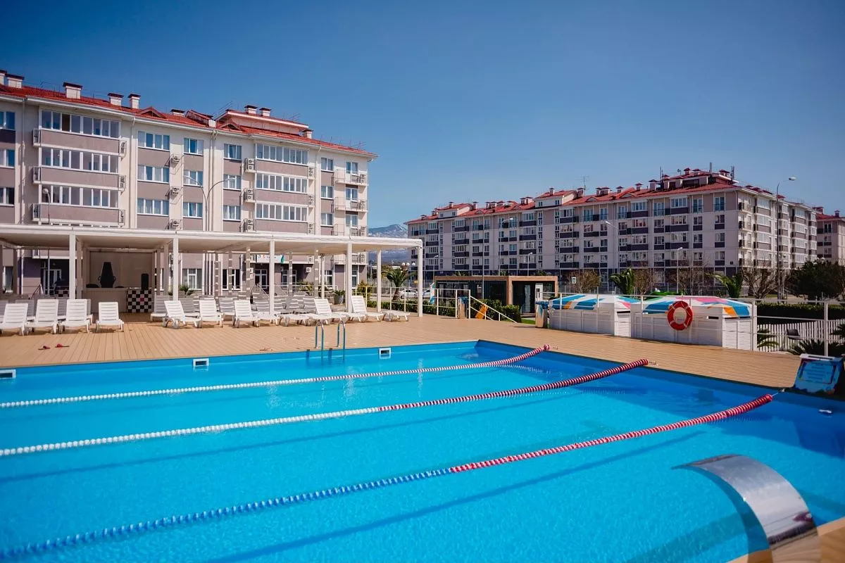 – В городе-отеле «Бархатные сезоны» на текущий момент есть все необходимое для комфортного отдыха круглый год: от аптек и магазинов до многофункционального спортивного комплекса и современного Центра здоровья. Отель расположен на первой береговой линии с пляжем протяженностью более 550 метров, который имеет наивысшую категорию оценки – как международную («Голубой флаг»), так и российскую («Синий флаг»).