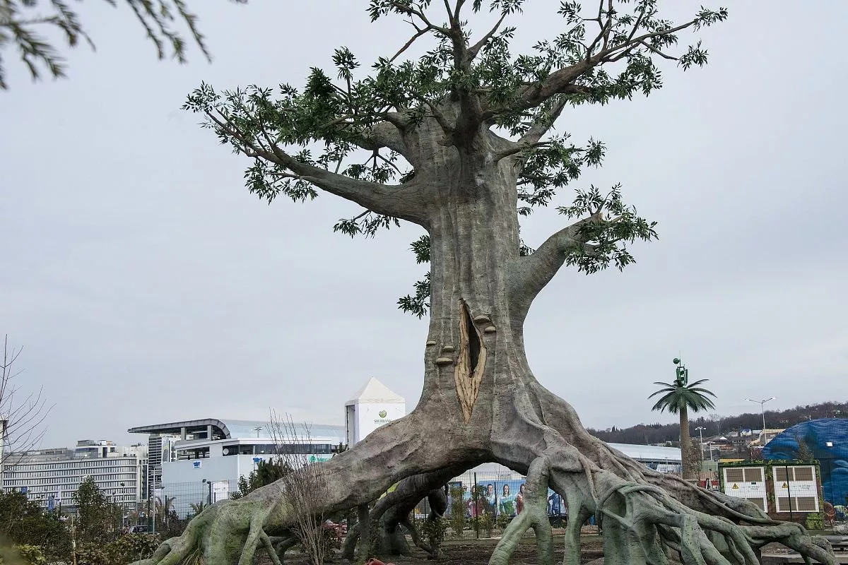 Восемь тематических земель Сочи Парка наполнены множеством развлечений, причудливых декораций и необычных мест отдыха. Одно из них – сказочное вечнозеленое «мангровое дерево» в Эко-деревне. Толстый ствол со сквозным проходом, мощные корни и раскидистые ветви, оплетенные вьюном, – настоящий портал в сказку и магнит для привлечения сотен туристов. Круглый год гости спасаются в тени необыкновенного дерева и делают фото на память о встрече со сказкой.