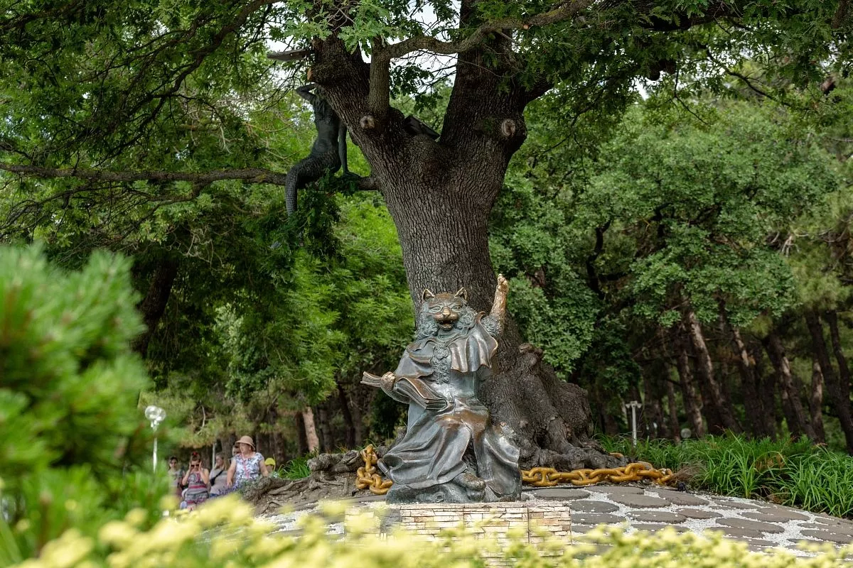 Особую прелесть Геленджику придает его знаменитая набережная, одна из самых протяженных и красивых в России – более 14 км. Наиболее благоустроена ее центральная часть – сплошная пешеходная зона, любимое место встреч, прогулок жителей и гостей города. Ее украшает бесчисленное количество деревьев, самое известное из которых – сказочный вековой дуб. Из года в год он обрастает персонажами из сказок Пушкина. Возле дерева уже есть скульптура ученого кота, а на ветвях – цепь и медная русалка.