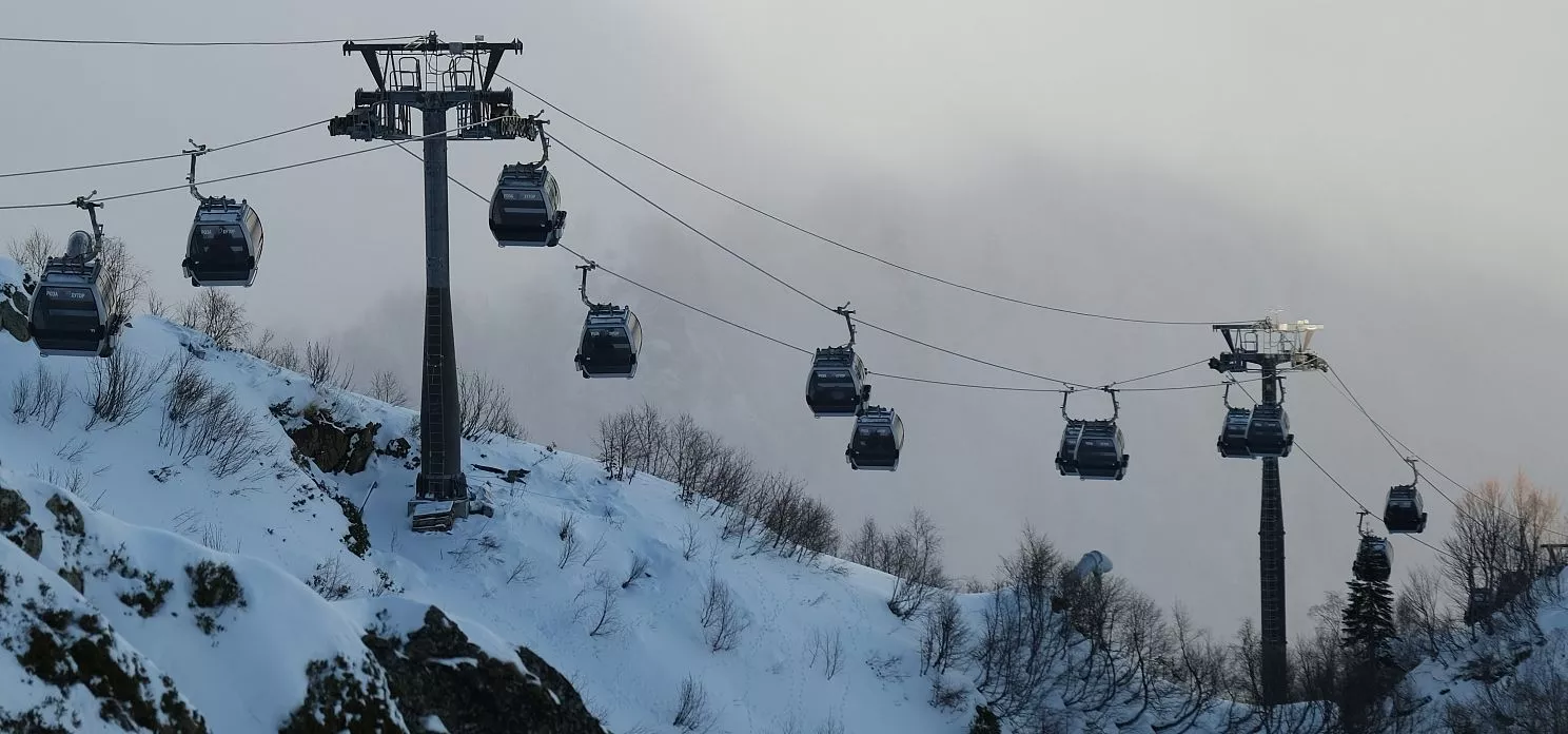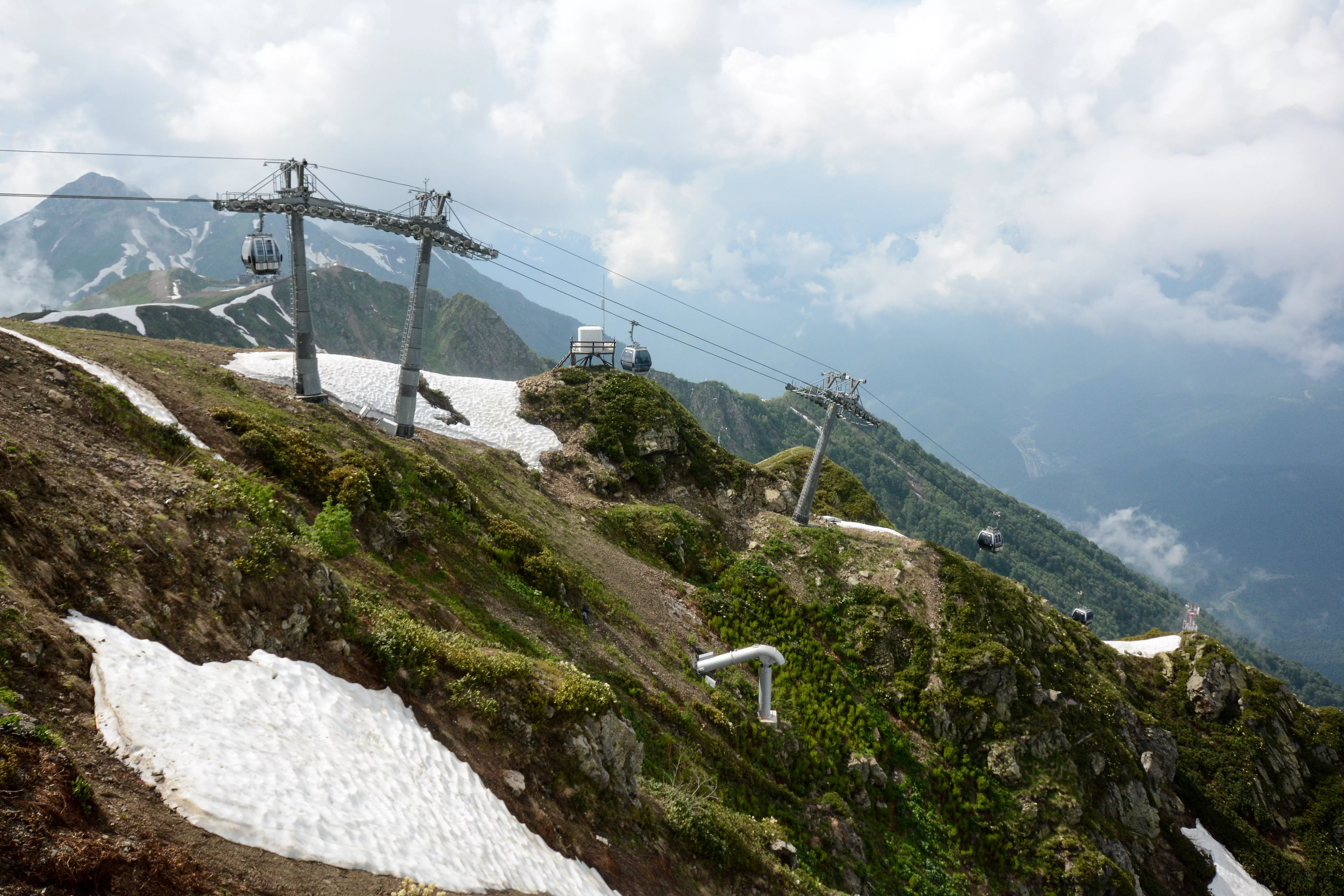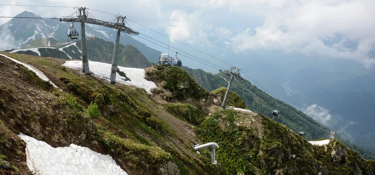 Еще один сочинский горный курорт располагает кольцевой канатной дорогой протяженностью более 5 км. Кабины с большими панорамными окнами позволяют любоваться открывающимися видами с разных сторон. Также туристы могут выбрать отрезок пути в открытом кресельном подъемнике. На нем гости курорта поднимаются на склон Альпика, чтобы насладиться пейзажами местных лугов.