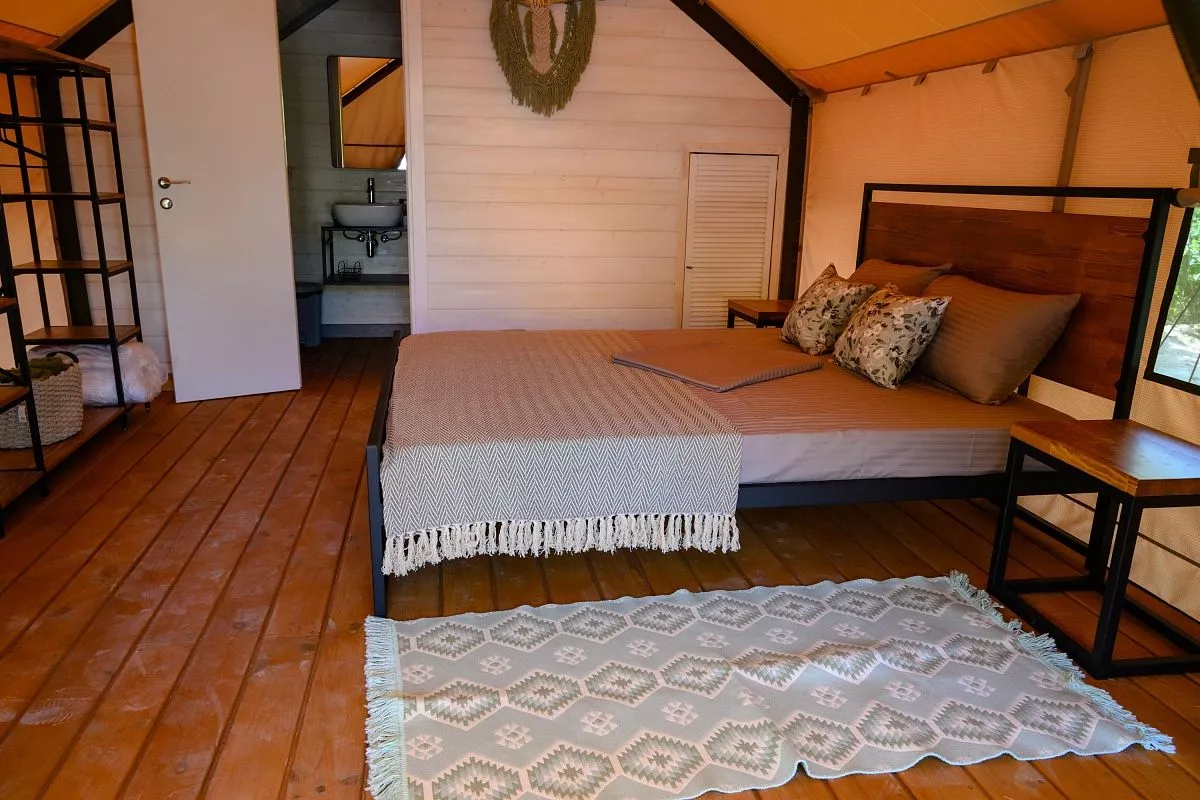 Туристы могут отдыхать в палатках, тент-хаусах, шатрах, домах на колесах.