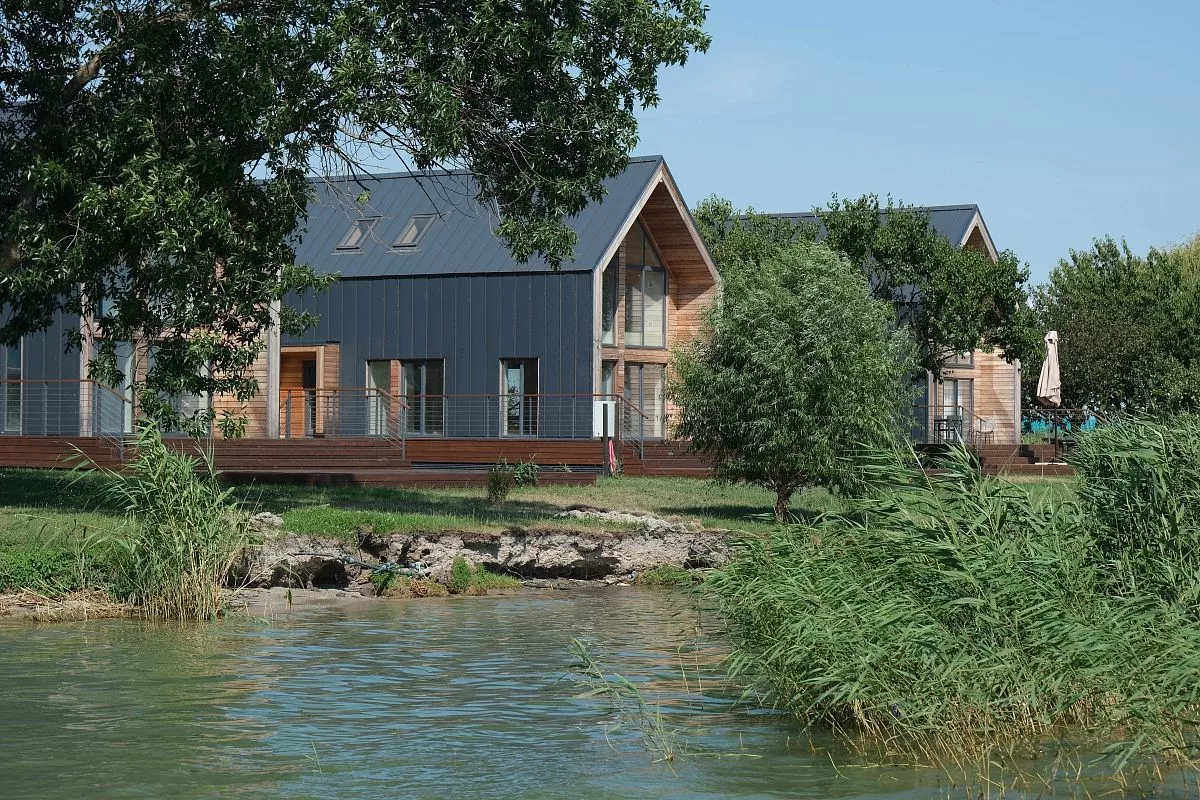 На базе отдыха есть комфортные номера в стиле лофт. Из окна открывается живописный вид на лиман.