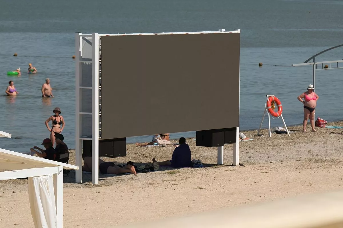 Новая изюминка центрального пляжа в Приморско-Ахтарске – огромный экран, где по вечерам бесплатно показывают кинофильмы.