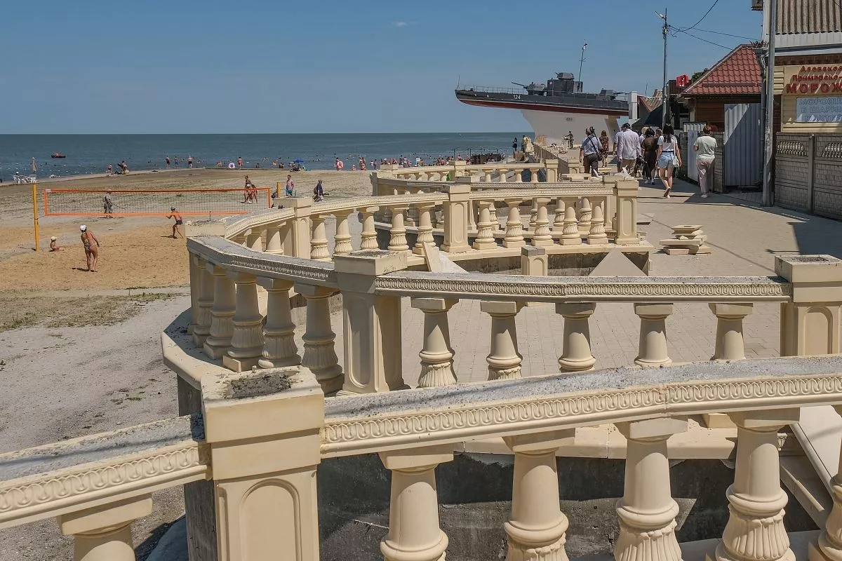 Центральный пляж в Приморско-Ахтарске расширили. Здесь установили бунгало, большой экран, где по вечерам показывают фильмы. Благоустраивается городская набережная. После завершения всех работ она станет самым протяженным променадом на Азовском побережье.