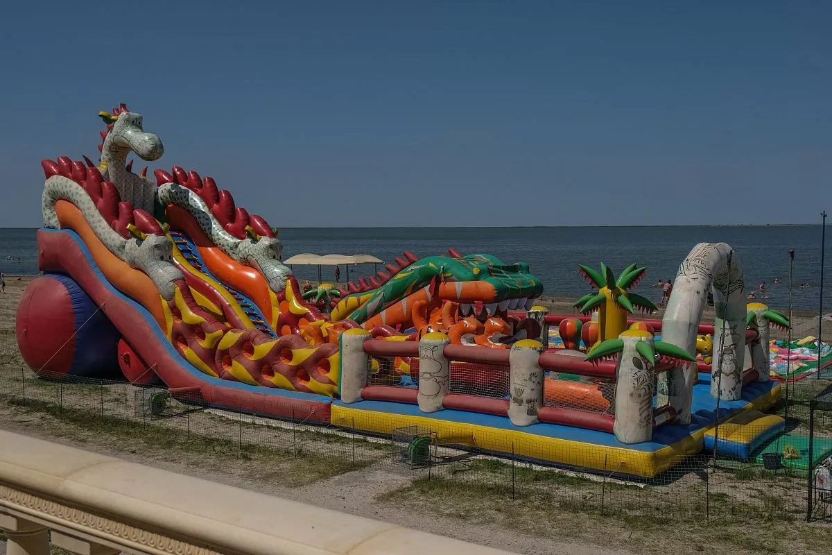 На приморско-ахтарском пляже есть водные аттракционы – надувные игровые конструкции на берегу, скутеры, яхты в море. А еще здесь можно заняться виндсерфингом.