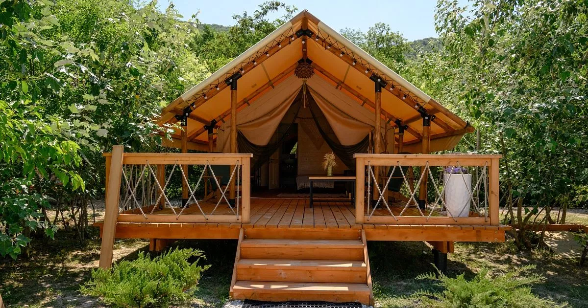 В Широкой Балке этим летом открыли глэмпинг, где путешественники могут остановиться в сафари-тентах. Они построены так, что в них не жарко, а зимой будет тепло и уютно.