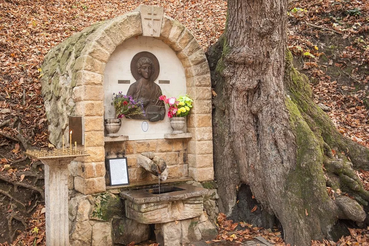 Родник, освященный в честь великомученика Пантелеимона Целителя, расположен у входа в Дантовом ущелье в Горячем Ключе. Вода стекает по желобу, над которым расположен каменный лик святого Пантелеимона. Чуть дальше находится часовня во имя Иверской иконы Божией Матери, построенная еще в конце позапрошлого века.