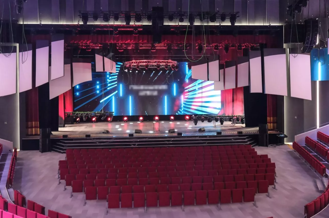 Общая площадь объекта превышает 14 тысяч квадратных метров. Внутри – концертный зал на 1600 зрителей и малый зал почти на 300 человек.