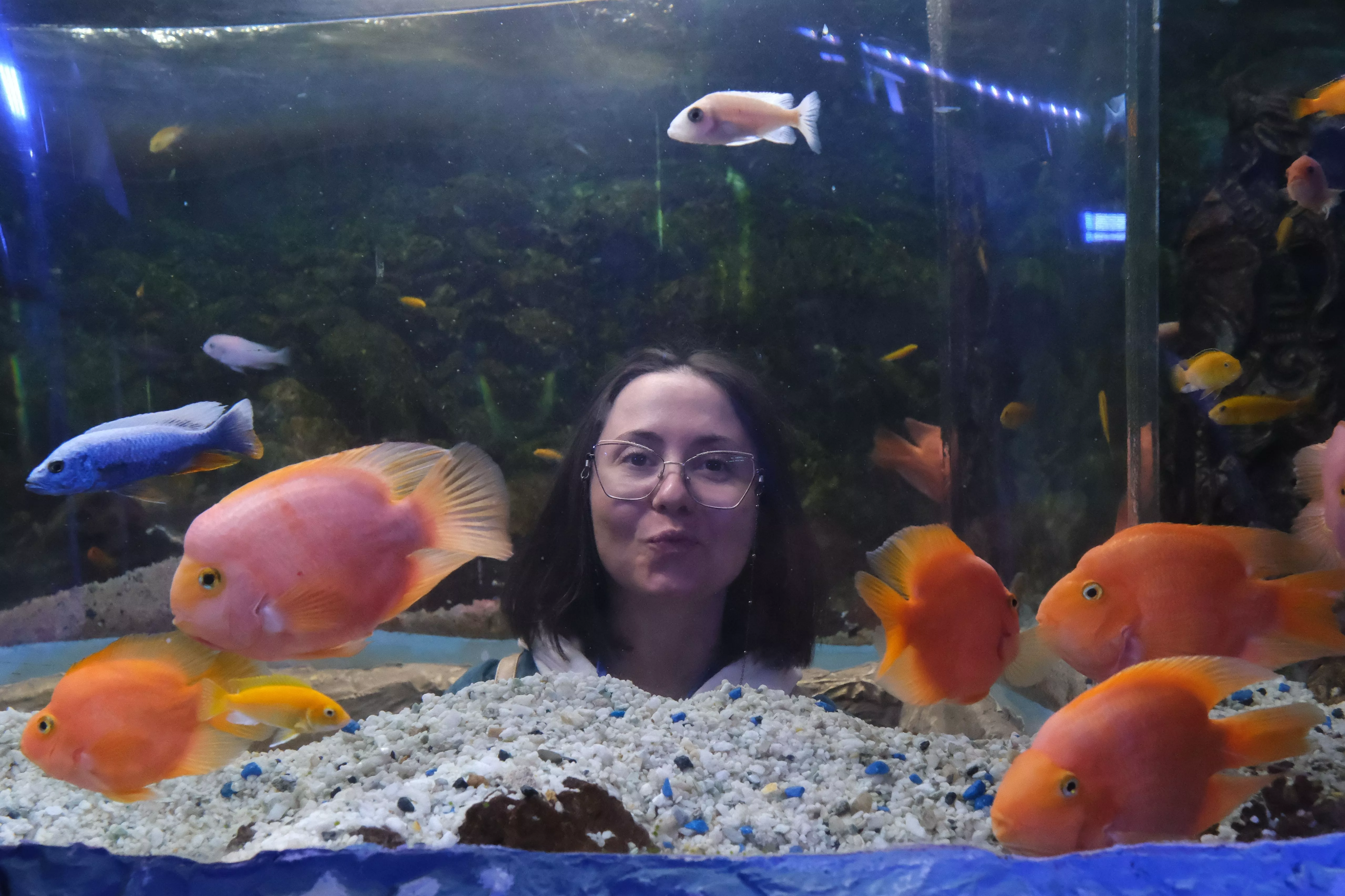 Есть здесь и популярная зона для селфи. Достаточно чуть нагнуться, и вы оказываетесь в небольшом подводном тоннеле. Если посмотреть снаружи, кажется, что человек находится прямо внутри аквариума, а вокруг него плавают шустрые разноцветные тропические рыбки.