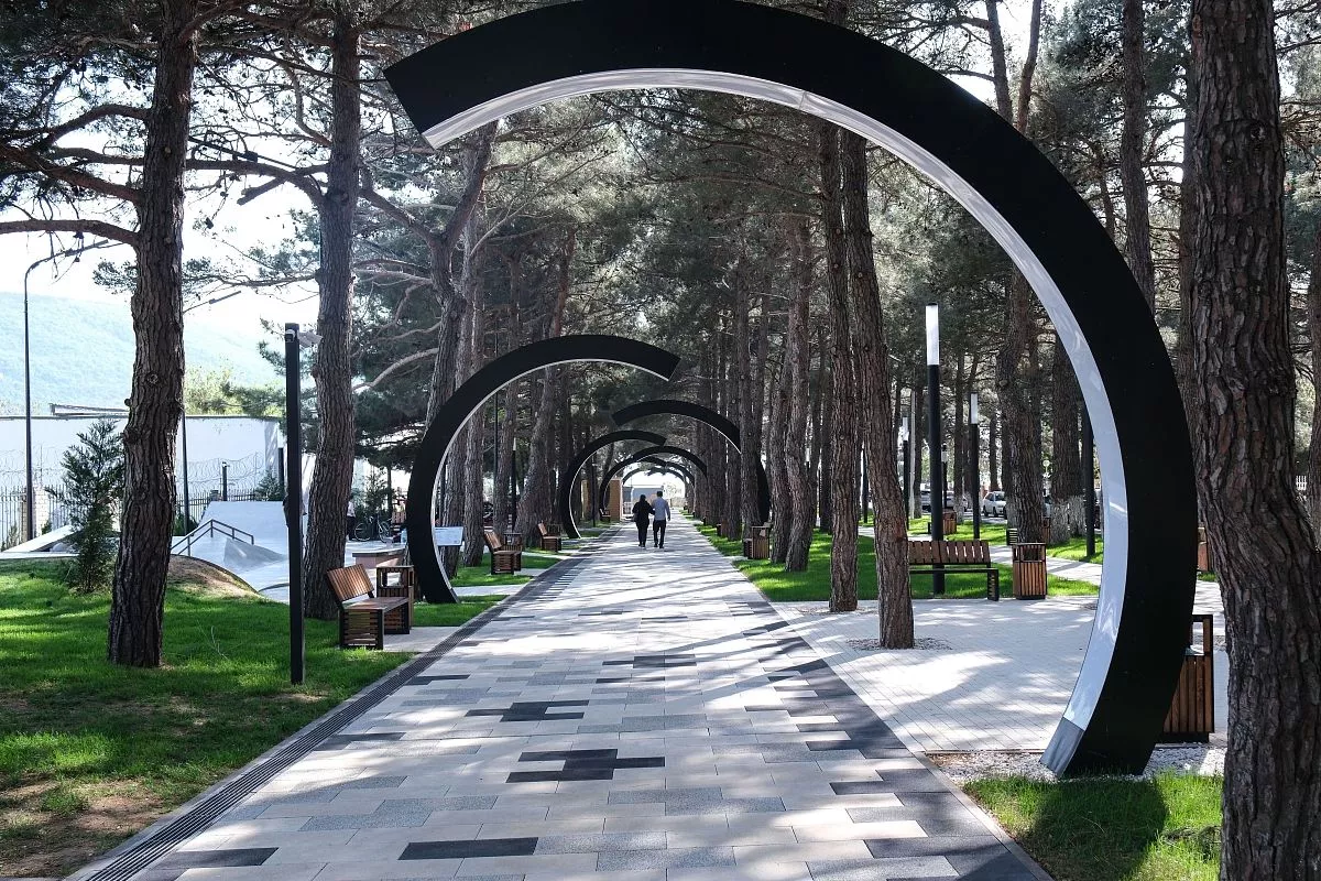 В Кабардинке в этом году открыли уютный и современный сквер с детской площадкой, стилизованной под деревянный фрегат, качелями и тренажерами.