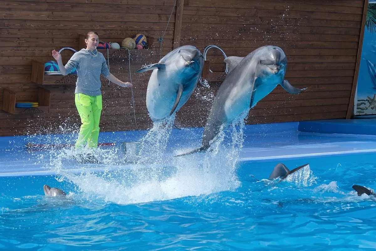 В дельфинарии можно увидеть танцующих китов-белух.