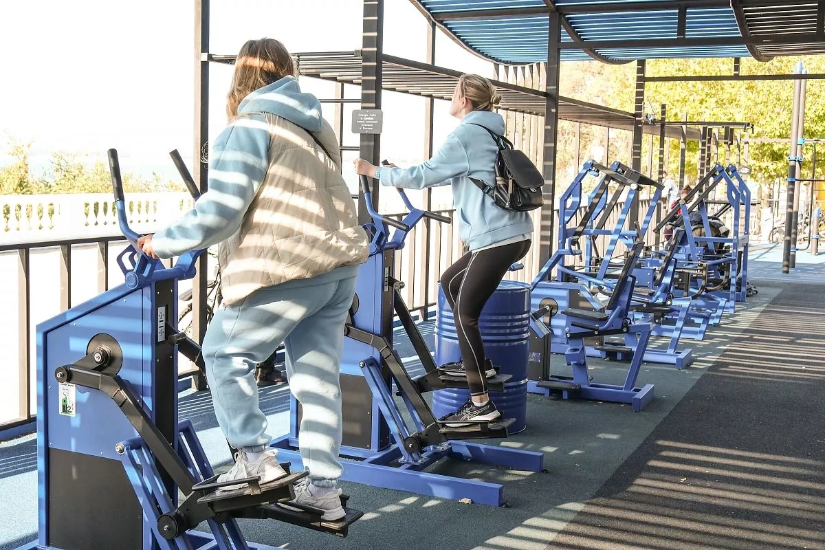 В этом году в Геленджике открыли современную многофункциональную спортплощадку. Заниматься здесь можно бесплатно. Внутри даже установлен медиаэкран, смотря на который, можно повторять упражнения за виртуальными инструкторами.