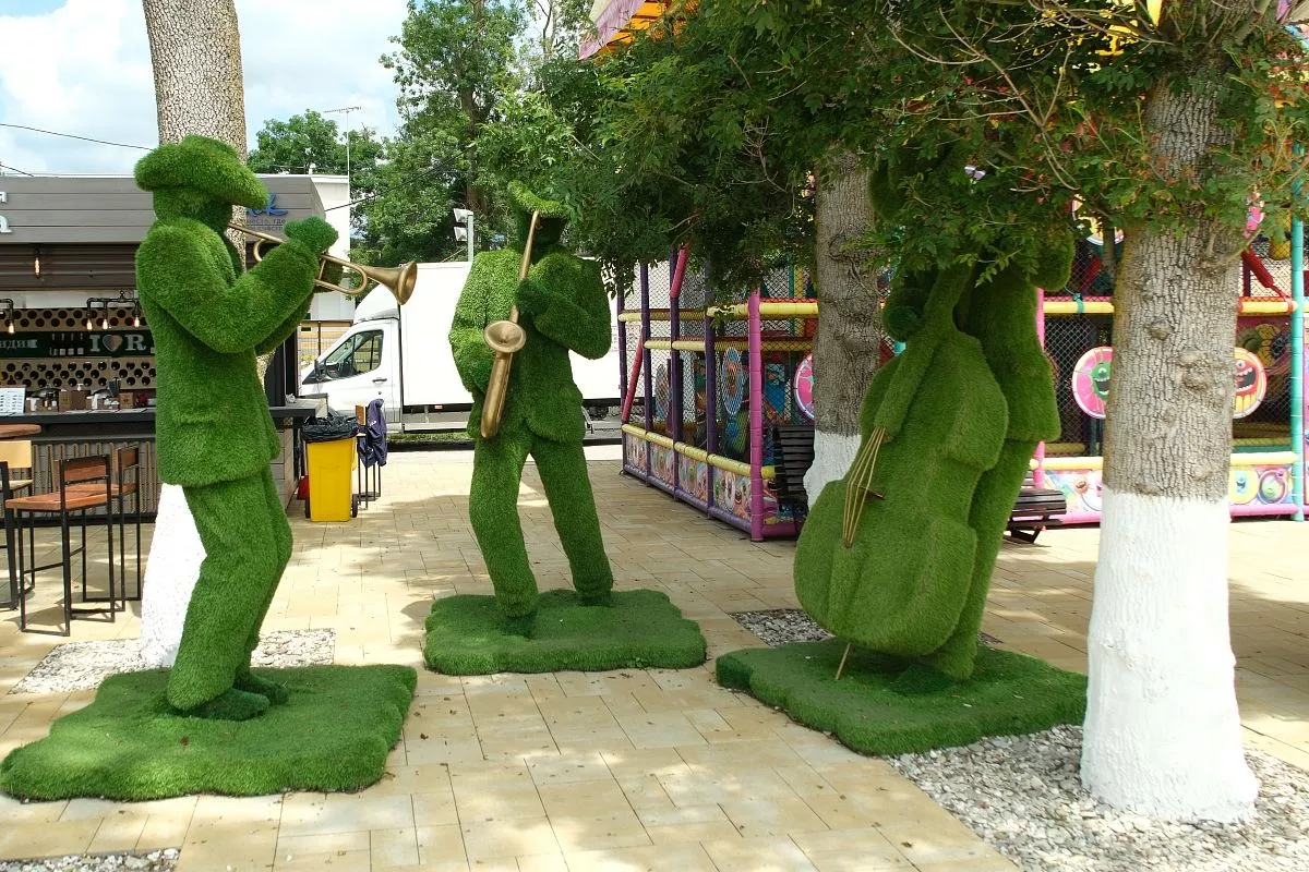 Изюминка набережной в Дивноморске – топиарные фигуры, например, этой группы музыкантов.