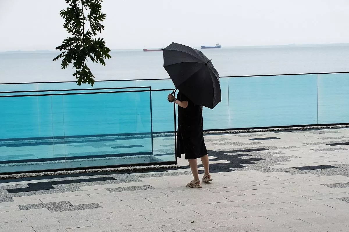 Туристы с удовольствием гуляют по выложенной удобной плиткой набережной Ейска и смотрят на море, опираясь на ажурные перила.