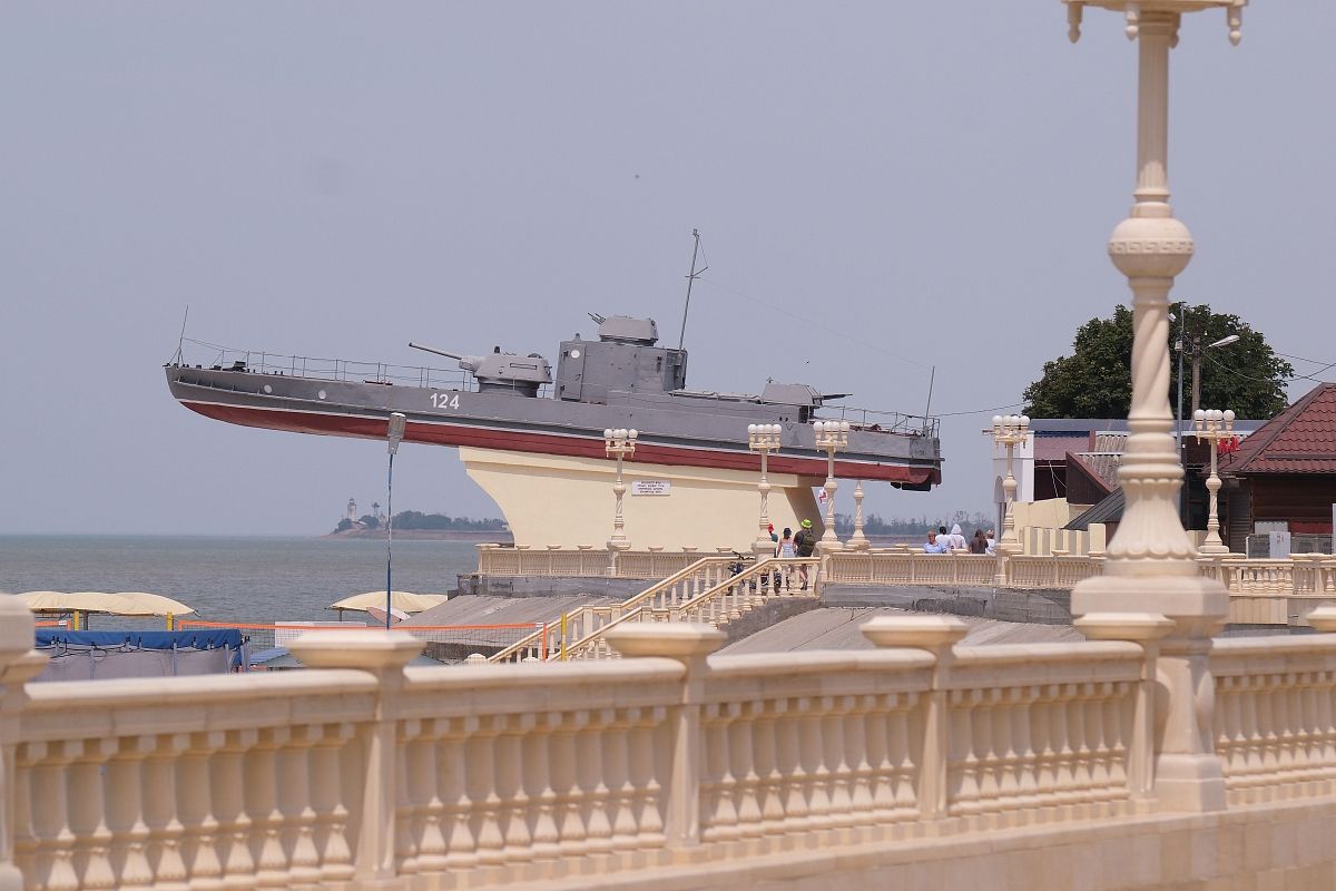 На набережной в Приморско-Ахтарске уже много лет на постаменте стоит бронекатер Азовской военной флотилии.
