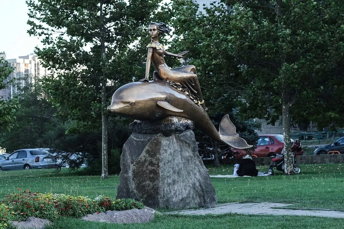 Помните песню про дельфина и русалку? Ее героев можно найти на набережной в Новороссийске. Здесь расположена скульптура «Девушка на дельфине», у которой есть и второе название – «Дельфин и русалка», хотя полностью оно не соответствует действительности, так как у бронзовой девушки нет рыбьего хвоста. Экскурсоводы говорят туристам, что, отправляясь в дальнее путешествие, следует потереть спину дельфину, на котором восседает русалка. И тогда поездка будет удачной.