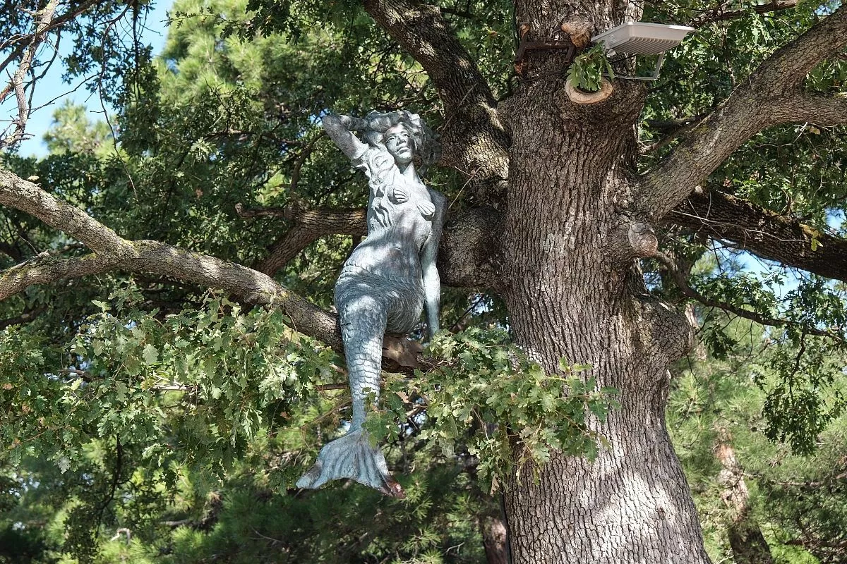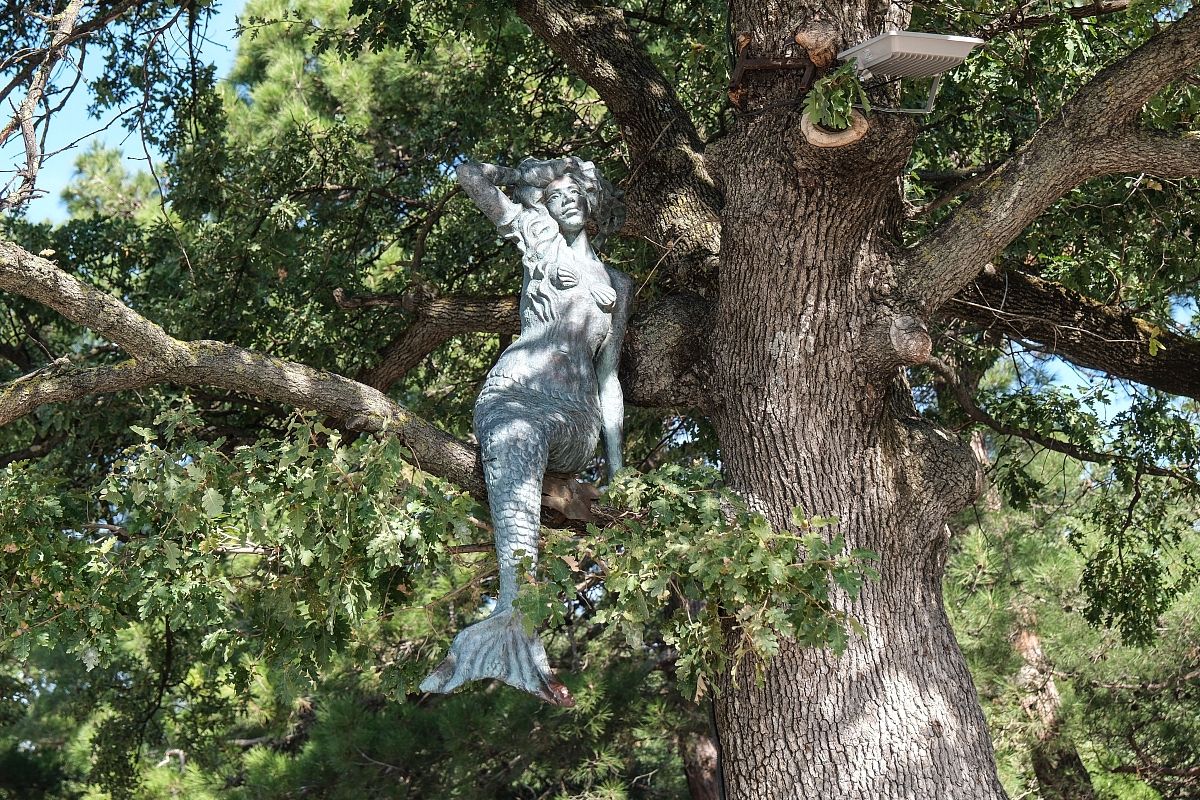 А эта русалка спряталась на геленджикском променаде среди дубовых ветвей. Прямо как пушкинская сказочная героиня.
