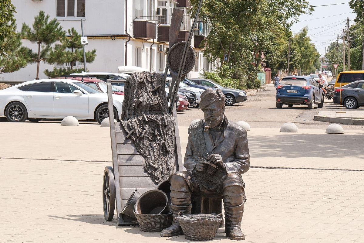 Скульптура старого рыбака, который чинит сети, на набережной Приморско-Ахтарска – тоже отсылка к истории. Так мог выглядеть местный рыбодобытчик в дореволюционное время.