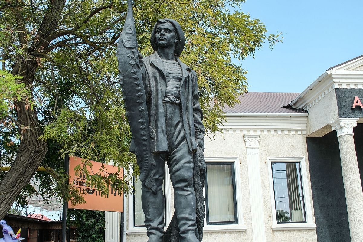 Скульптура рыбака, который в одной руке держит сети, а в другой – внушительного пойманного осетра, украшает центр поселка Пересыпь в Темрюкском районе. Она напоминает о том, что в советское время здесь велся промысел ценной рыбы.