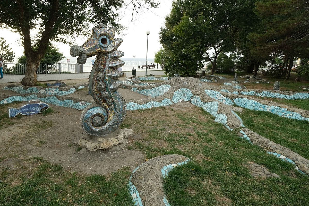 Мозаичные фигуры морских коньков и рыб еще с советских времен украшают набережную в Анапе.