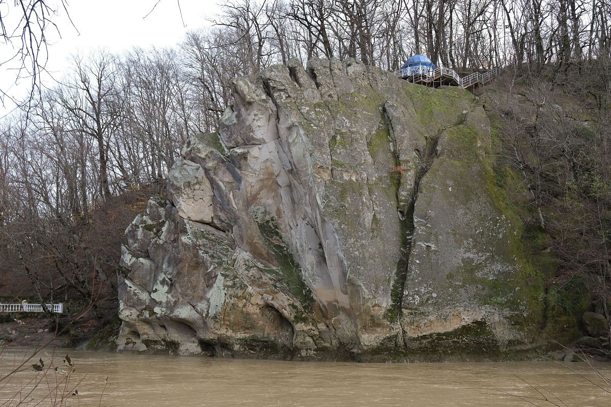 На вершину скалы Петушок в Горячем Ключе ведет терренкур. Он заканчивается беседкой, где можно отдохнуть и с высоты осмотреть окрестности.