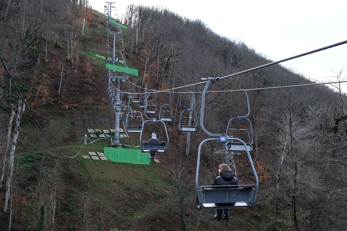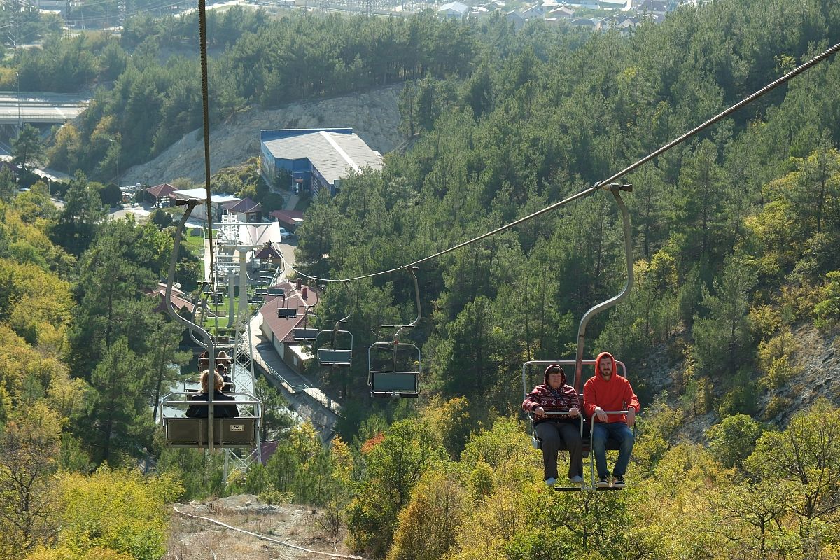 Кресельная канатная дорога в Горячем Ключе проложена от набережной реки Псекупс к парку на вершине хребта Котх. Часть воздушной прогулки проходит прямо над бурной рекой.