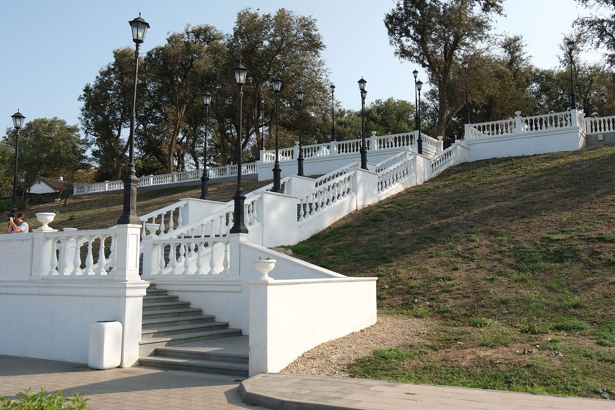 На набережной в Тамани есть красивый спуск к морю с фотозоной.