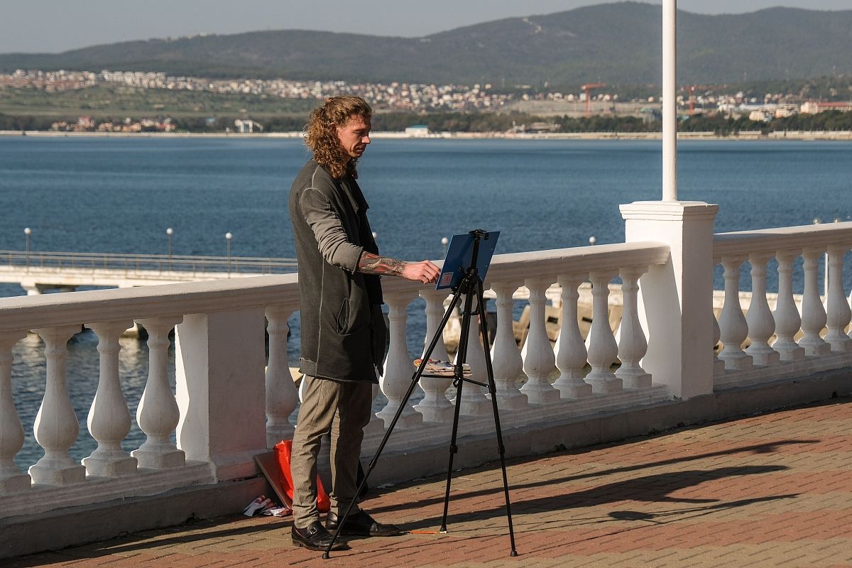 На набережную Геленджика осенью часто приходят художники, чтобы запечатлеть на холсте осенние приморские пейзажи.