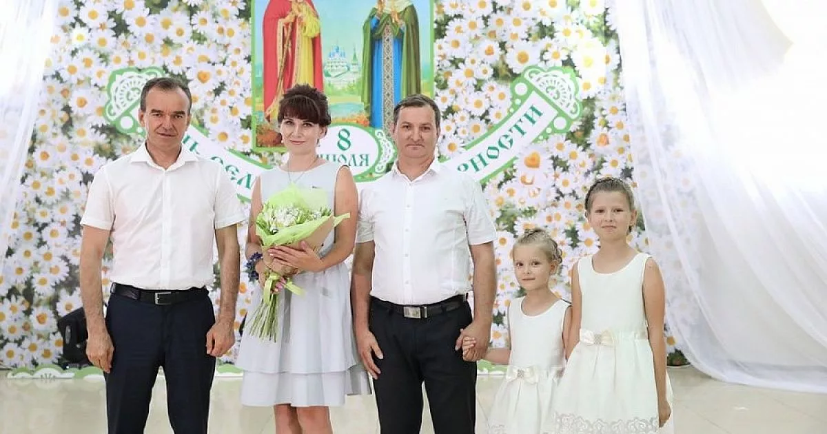 Торжественное мероприятие в честь Дня Петра и Февронии прошло в Краснодаре. Вениамин Кондратьев поздравил с праздником родителей, воспитывающих трех и более детей.